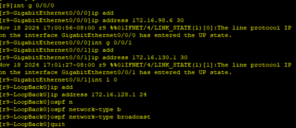 [r9-GigabitEthernet0/0/1]ospf network-type p2p