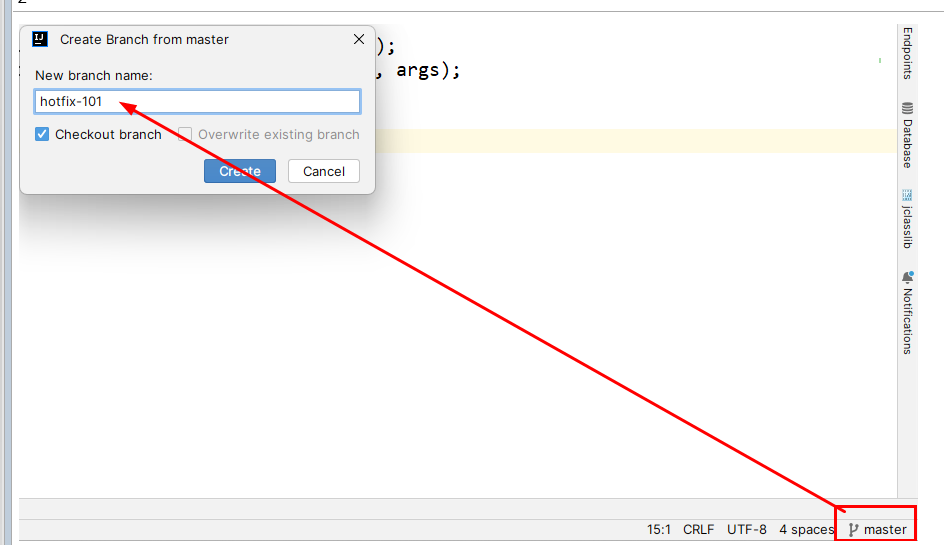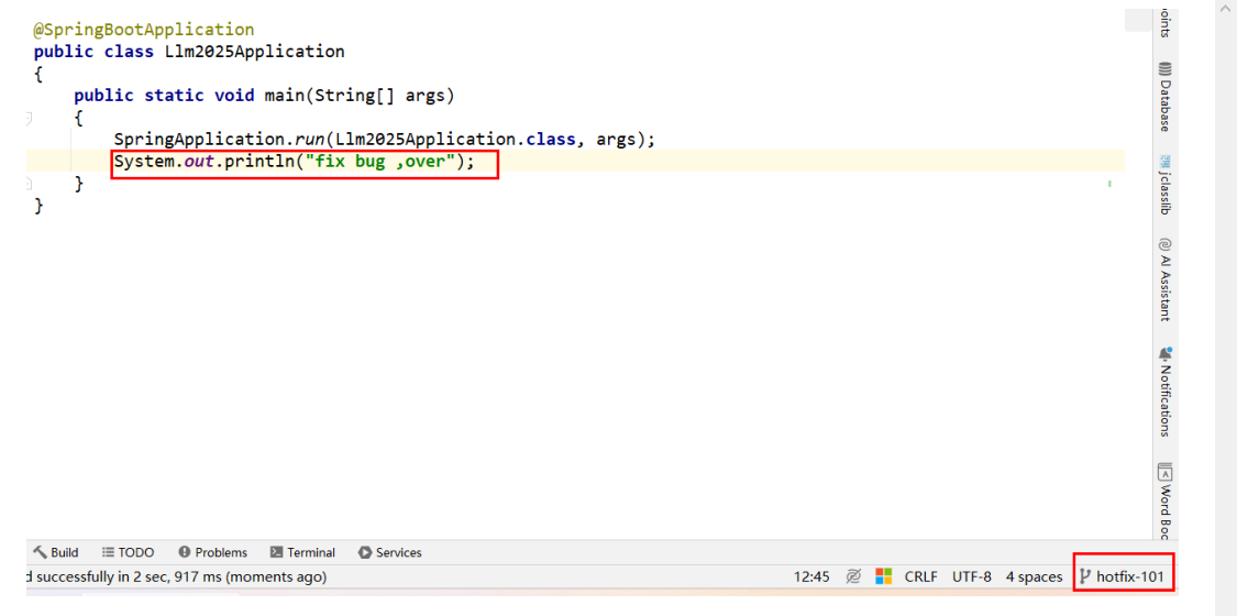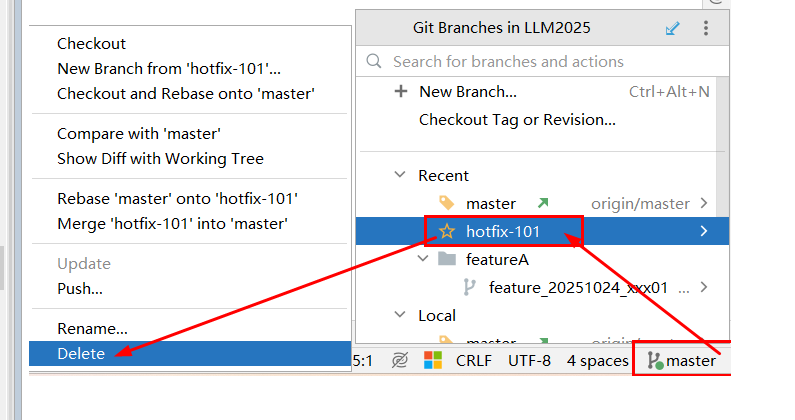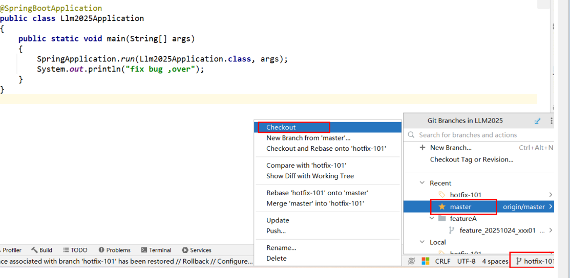 4.修复完成后,切换到master分支并完成合并,最后删除刚才创建的hotfix分支