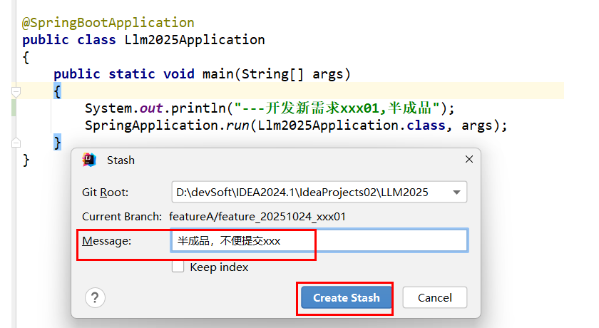 1.你正在功能分支feature进行功能开发,开发到一半,半成品;