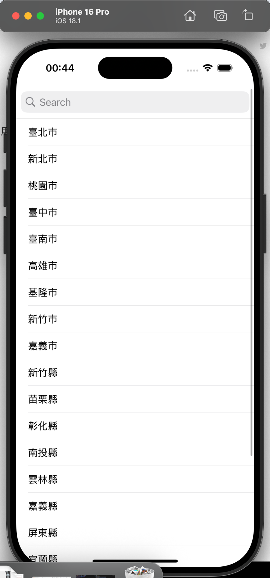 let cities = ["臺北市","新北市","桃園市","臺中市","臺南市","高雄市",...]
