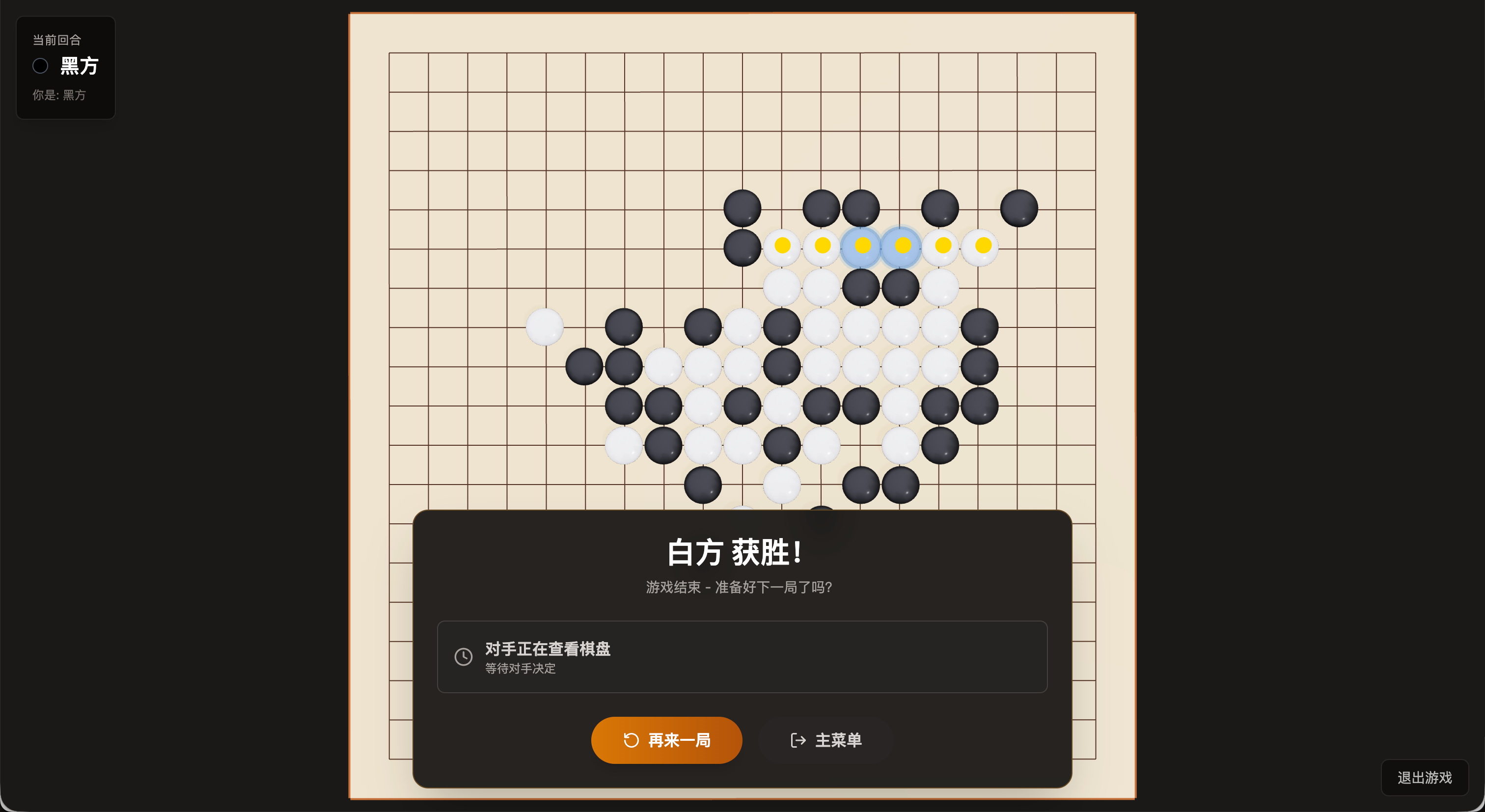 最后,我和室友联机下了一把六子棋,我又凭实力输了。