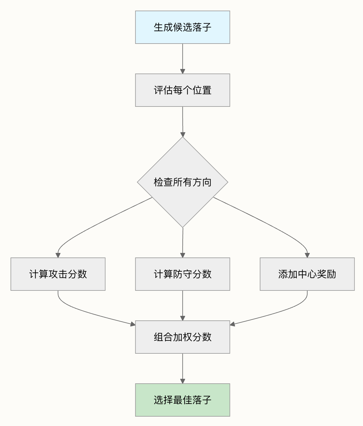 AI需要根据当前的局面,计算相关位置评分,然后进行选择最佳落子位置。