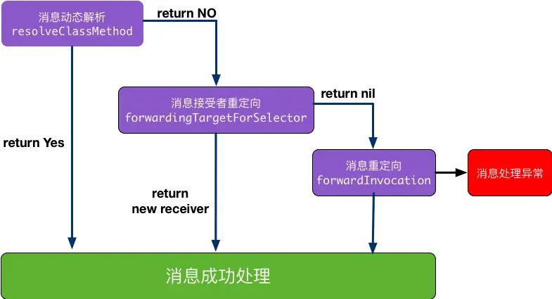 class_addMethod动态添加方法,处理消息;NO则进行下一步 -