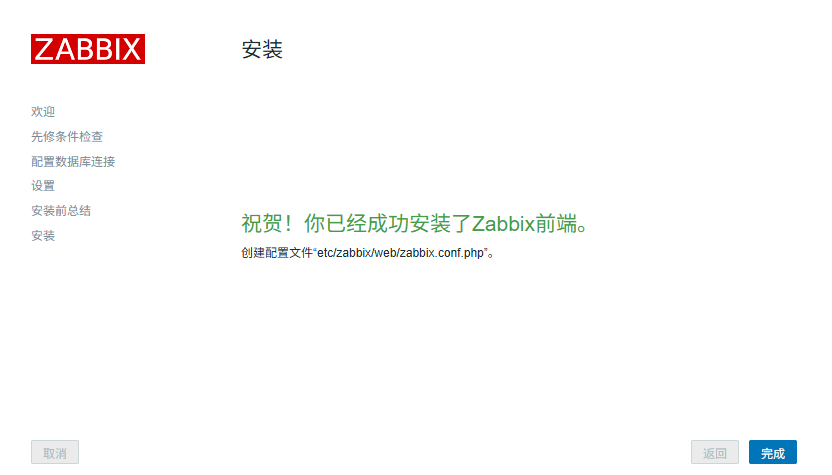 chown apache:apache /etc/zabbix/web/zabbix.conf.php
