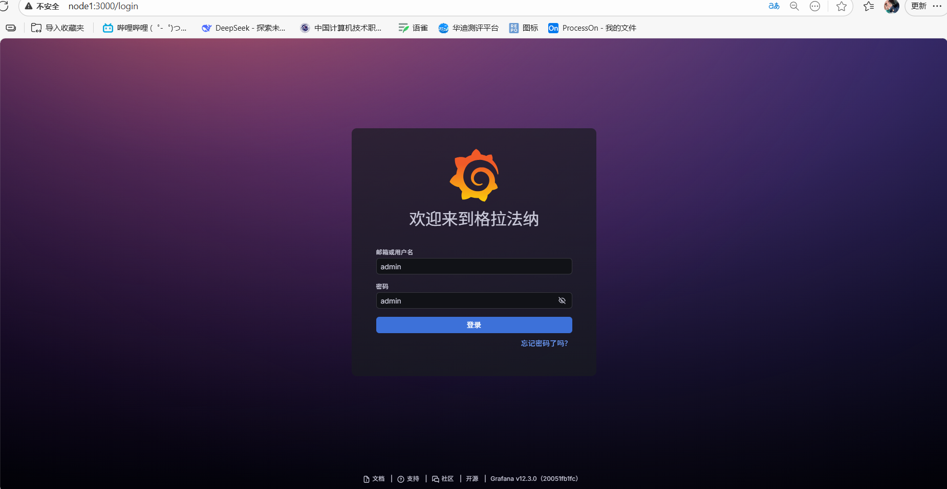 打开浏览器访问:http://node1:3000 默认账户密码:admin/admin
