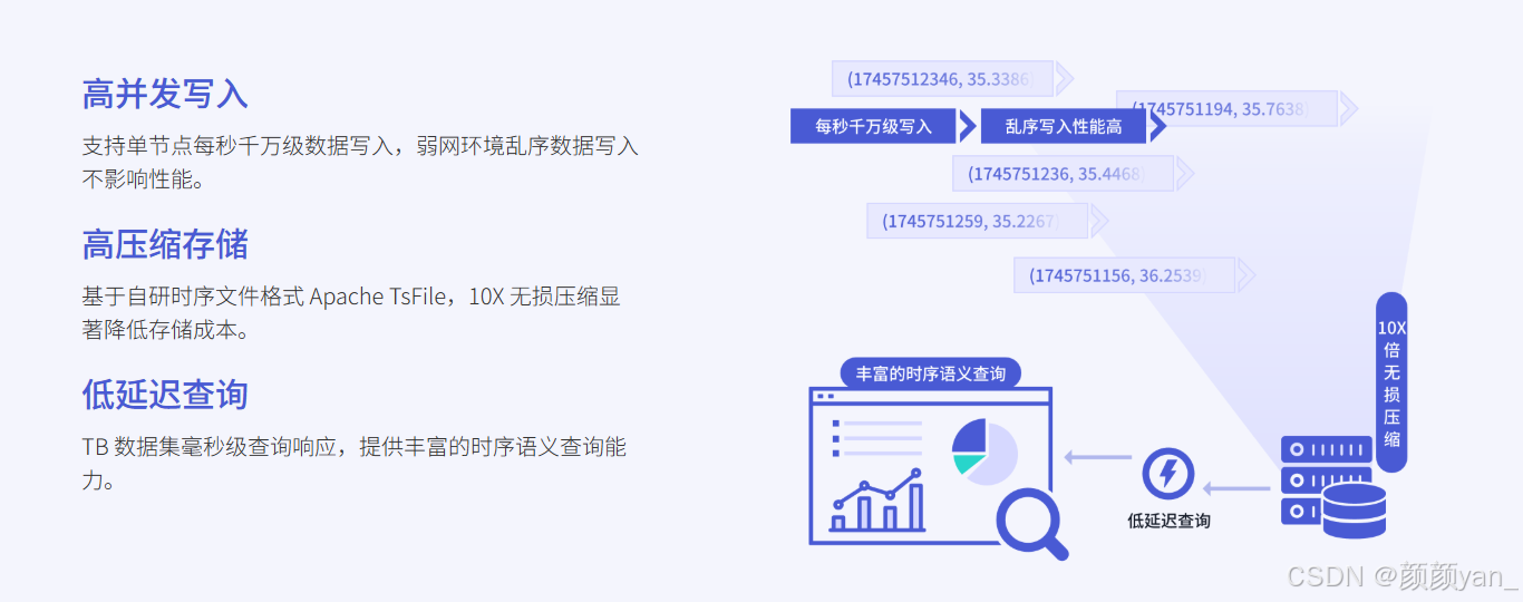 | 存储压缩比 | 压缩前后数据量 | 工业数值类型 ≥ 10:1 |
