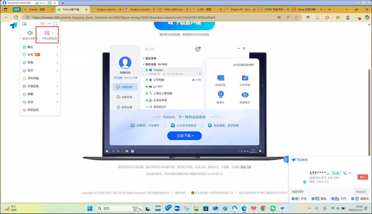 ToDesk深知在远程控制过程中保护被控端隐私的重要性,为此提供了一系列精细化的隐私保护功能。
