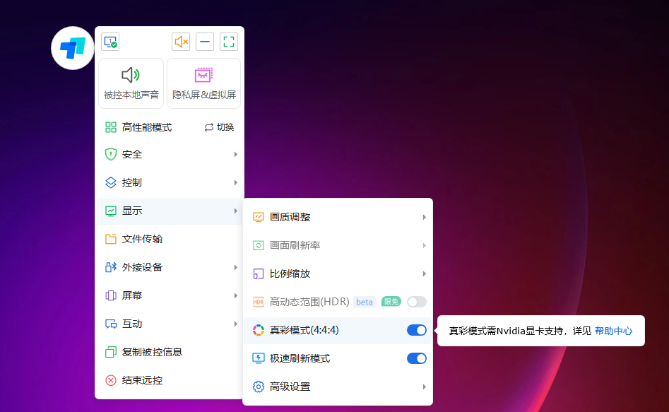 对于追求极致体验的专业用户,ToDesk提供了更为深入的高级画质设置选项。