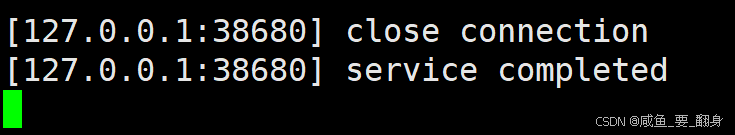因为当写端进程停止写入而读端进程持续读取时,读端进程会被挂起,因为此时没有数据可供读取。read会被阻塞,在telnet客户端退出后,此时当写端进程完成数据写入并关闭写端后,读端进程在读取完管道中剩余数据后会读到0值。然后输出第一行,最后输出第二行结果。