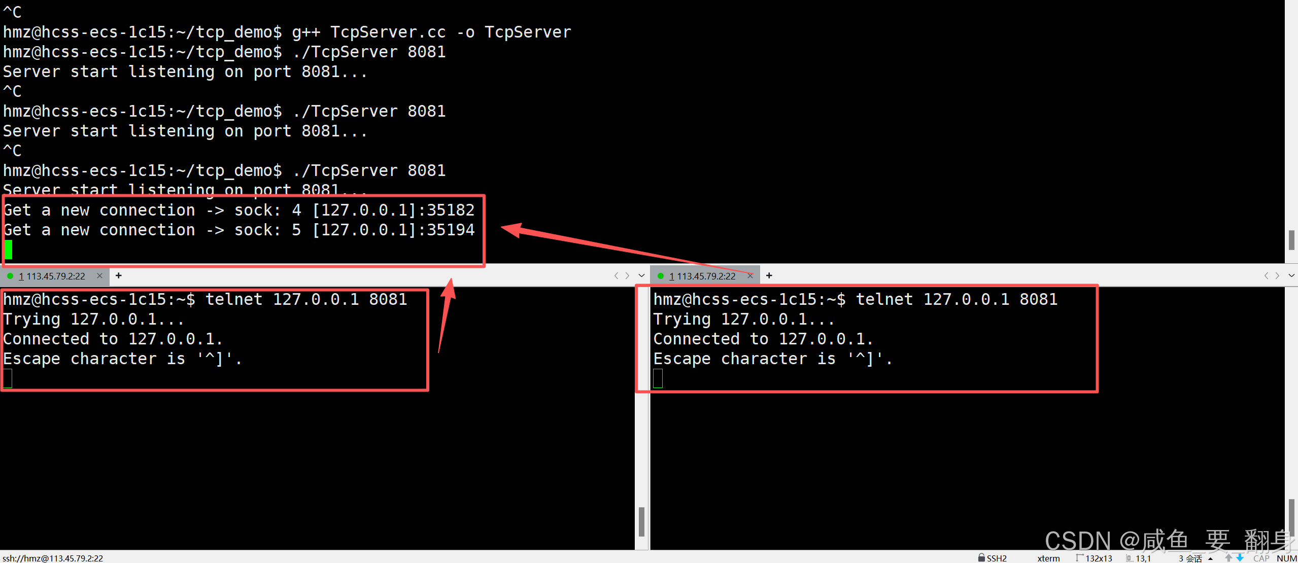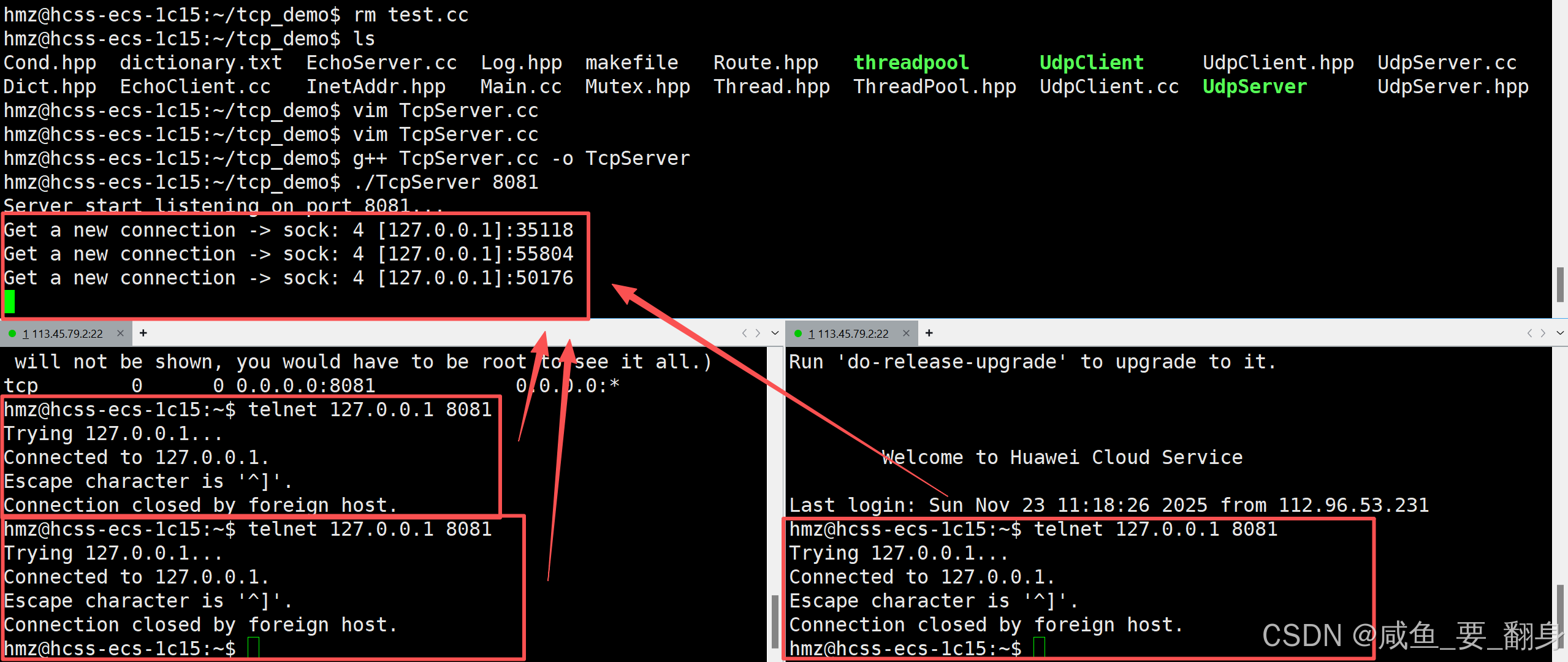 并发测试:可以开多个telnet窗口同时连接