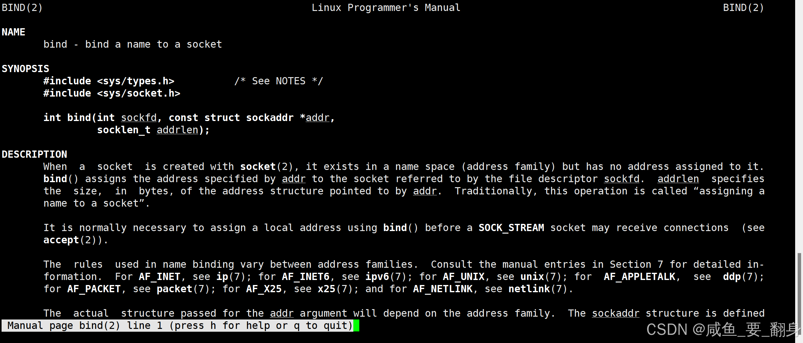 在创建完套接字后,我们实际上只是在操作系统层面打开了一个文件描述符,这个套接字还没有与任何具体的网络地址或端口关联。因此,创建套接字后必须调用bind()函数将其绑定到特定的网络地址和端口上,这样才能使服务端能够接收来自客户端的连接请求。