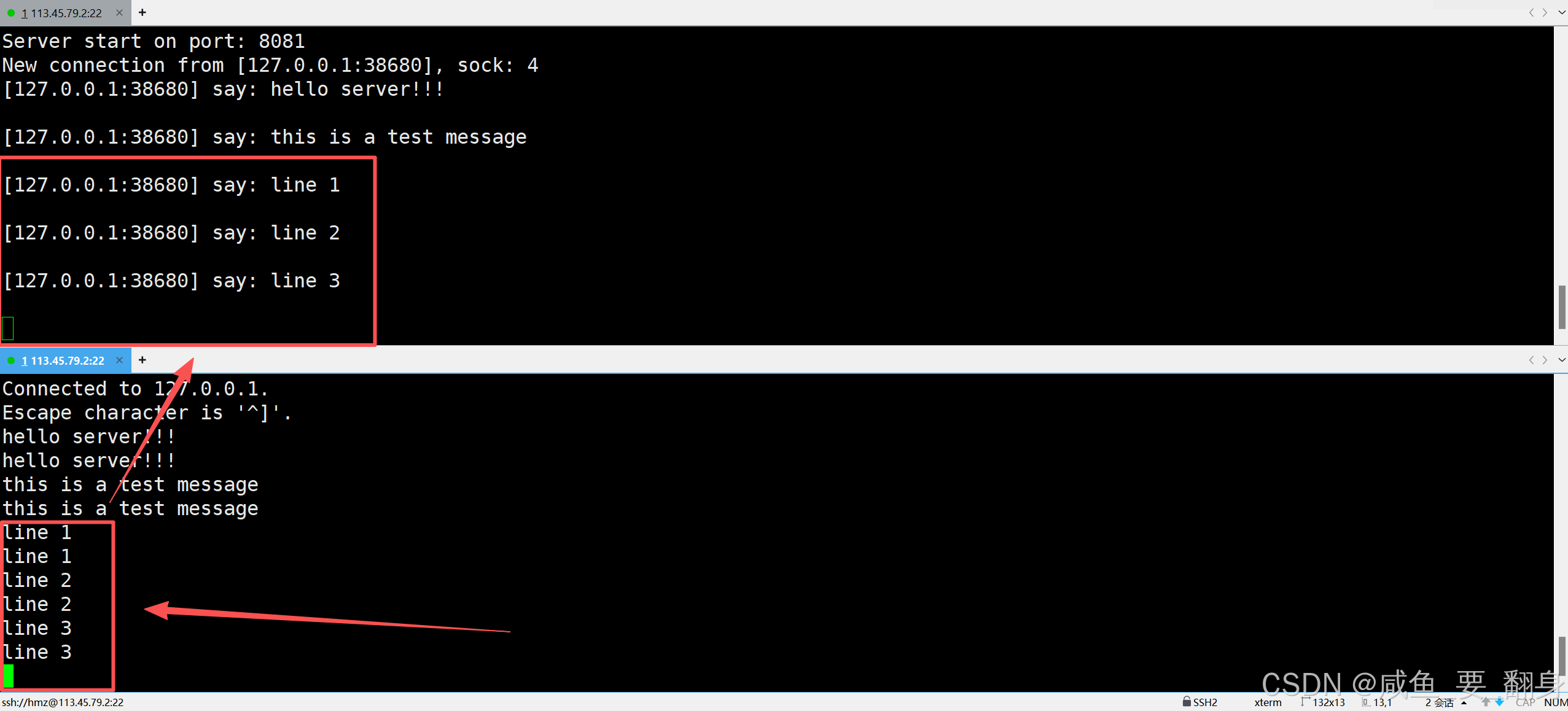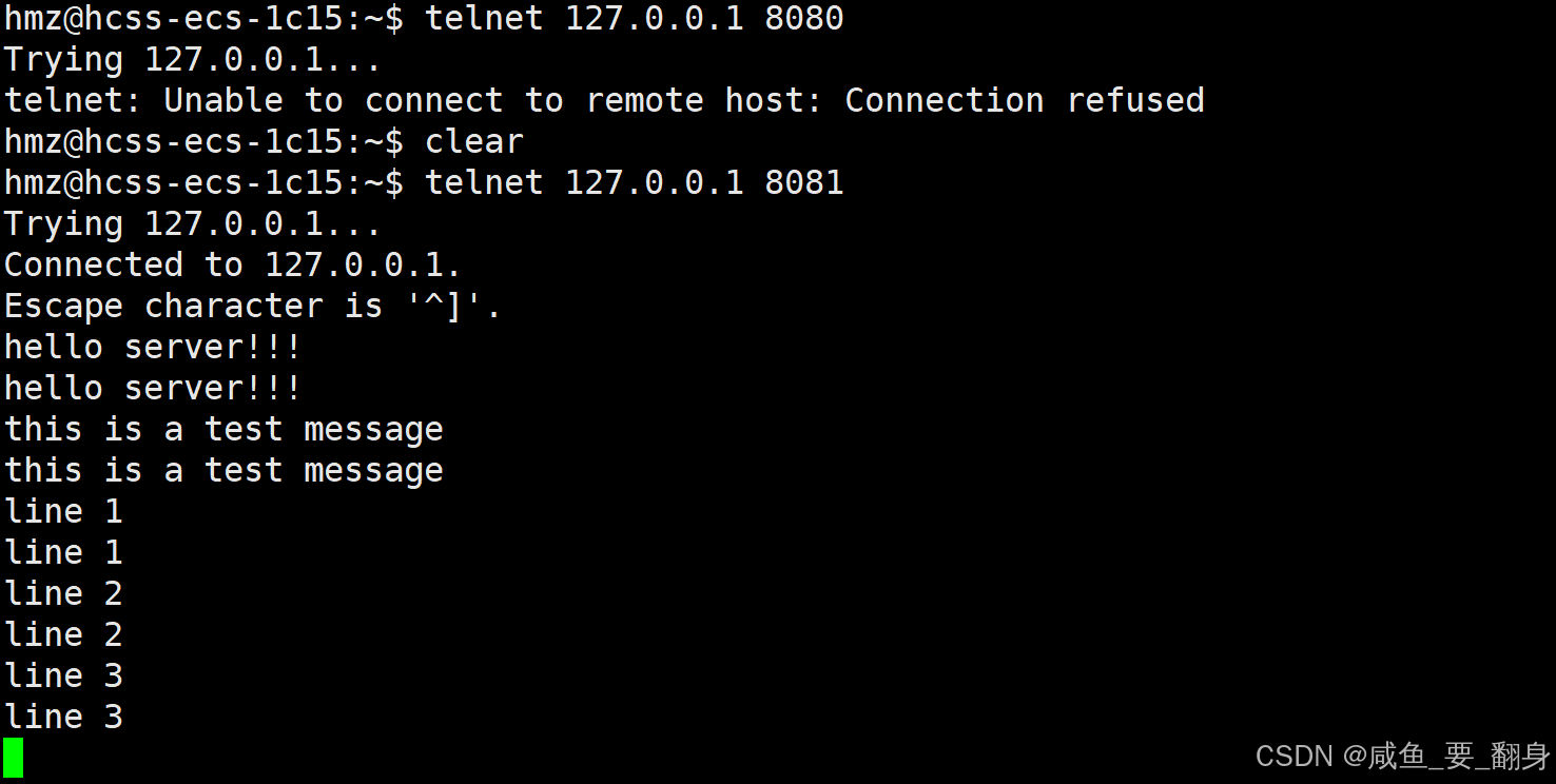 每输入一行,服务器都会立即回声返回。