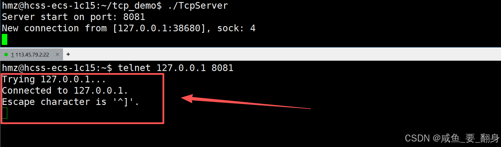 127.0.0.1:8081(服务器监听8081端口**(也就是TcpServer的端口)**) -