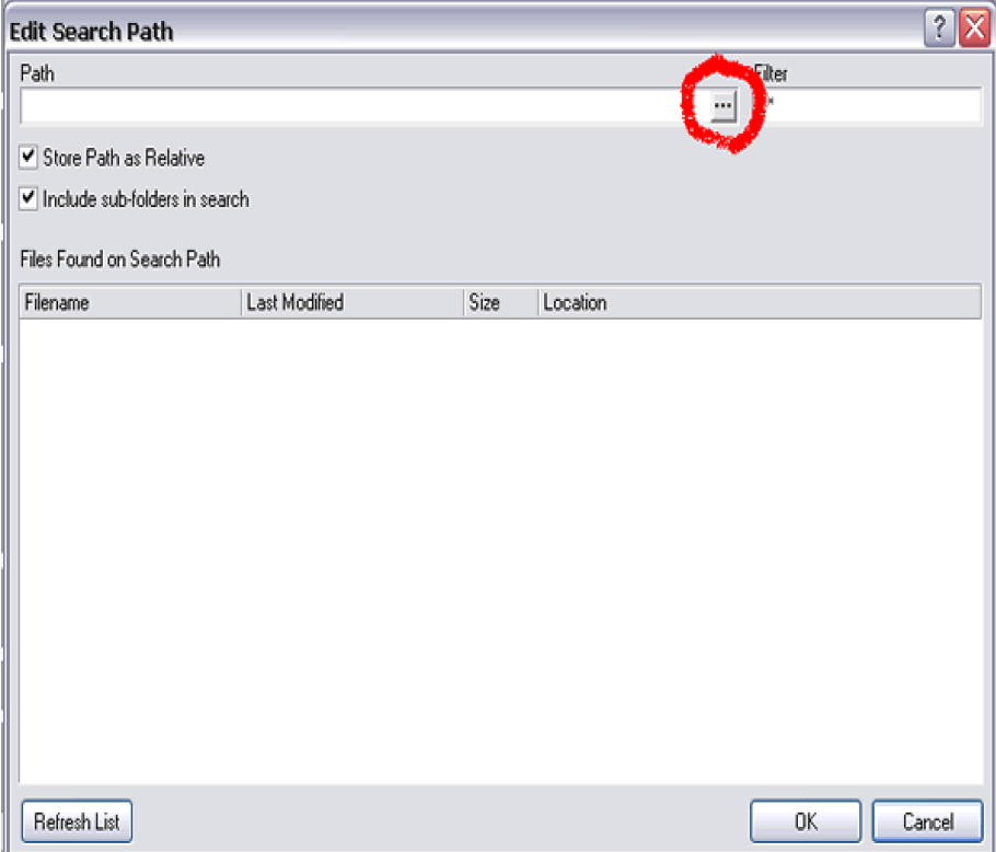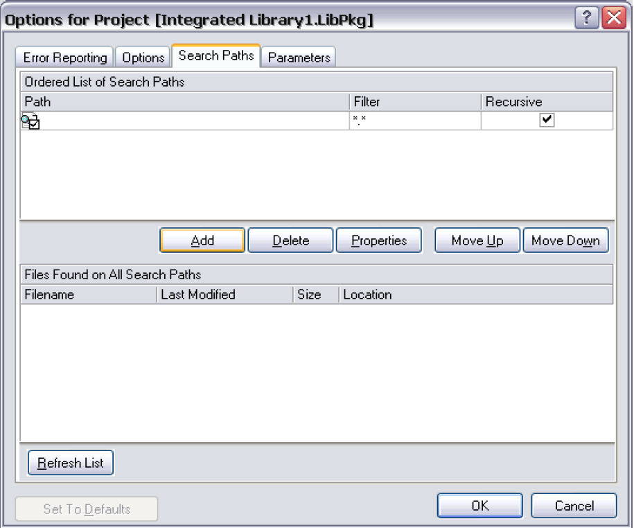 8 单击ADD 按钮,打开如图所示的对话框。点击图中所示按钮,选择.pcblib 所在的文件夹,单击Refresh List按钮确认所选择的文件夹是否正确,然后点击OK按钮关闭对话框。