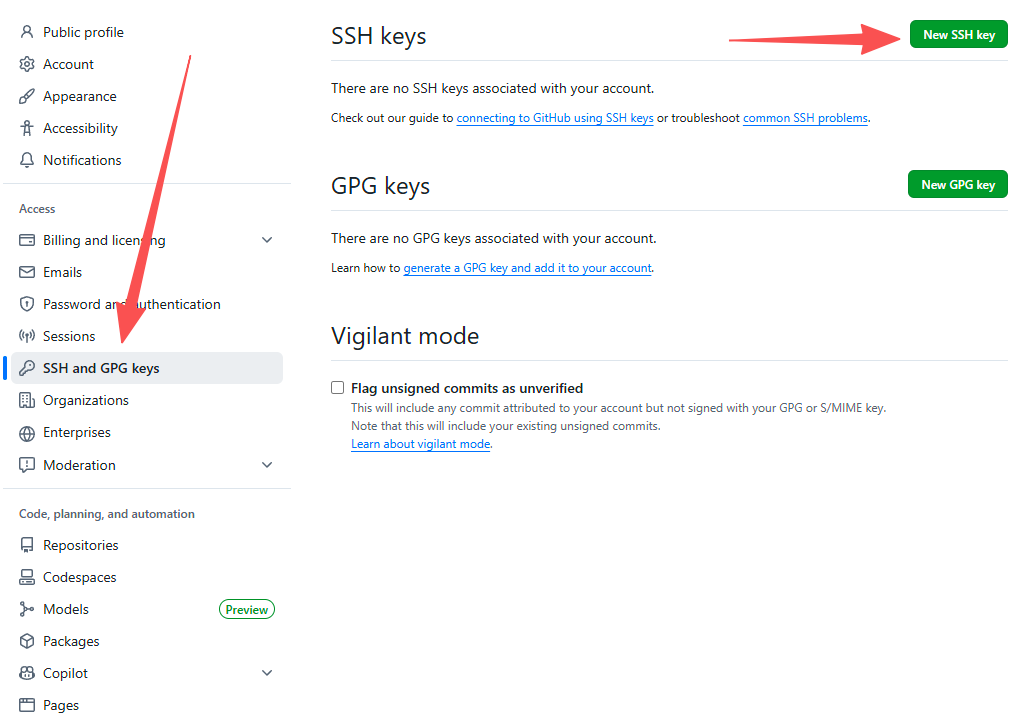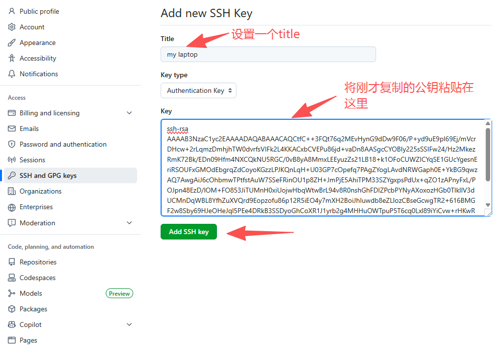 注意之后在clone仓库的时候要使用ssh的url,而不是https
