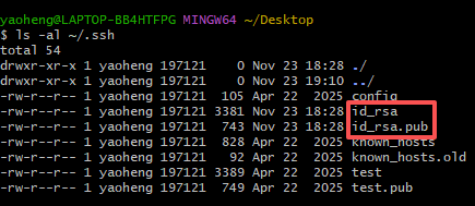 生成成功后,会在 ~/.ssh/ 目录下创建两个文件: