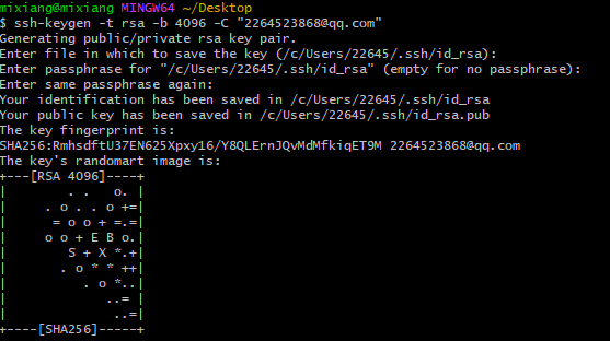 ssh-keygen -t rsa -b 4096 -C "[这里输入你的邮箱]"