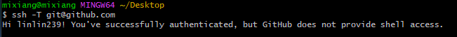 Hi yourName! You've successfully authenticated, but GitHub does not provide shell access.