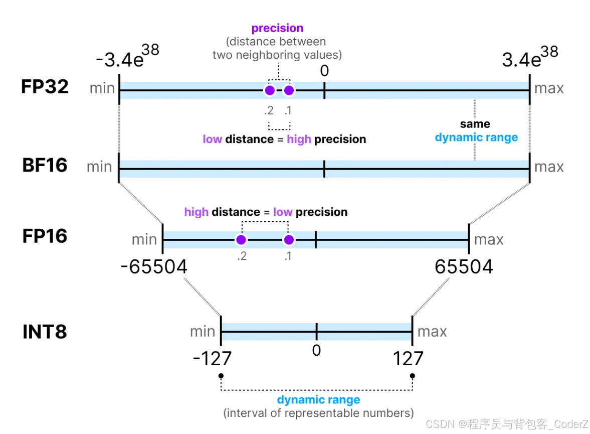 **量化(Quantization)**就是通过使用较低精度的整型格式来压缩LLM模型文件的大小,比如将LLM模型参数(比如权重、偏差等)的精度从32位浮点型(FP32)等较高精度格式降低到8位整型(INT8)或4位整型(INT4)等较低精度的过程,这大大减少了模型的存储大小和推理计算时的内存负载。