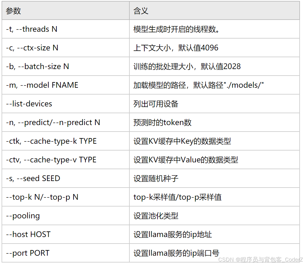 全量的命令行参数参考官方文档: https://github.com/ggml-org/llama.cpp/blob/master/tools/server/README.md