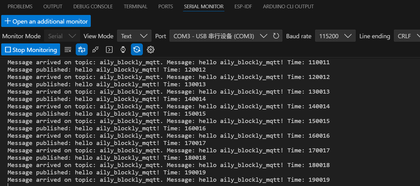 String message = "hello aily_blockly_mqtt! Time: " + String(millis());