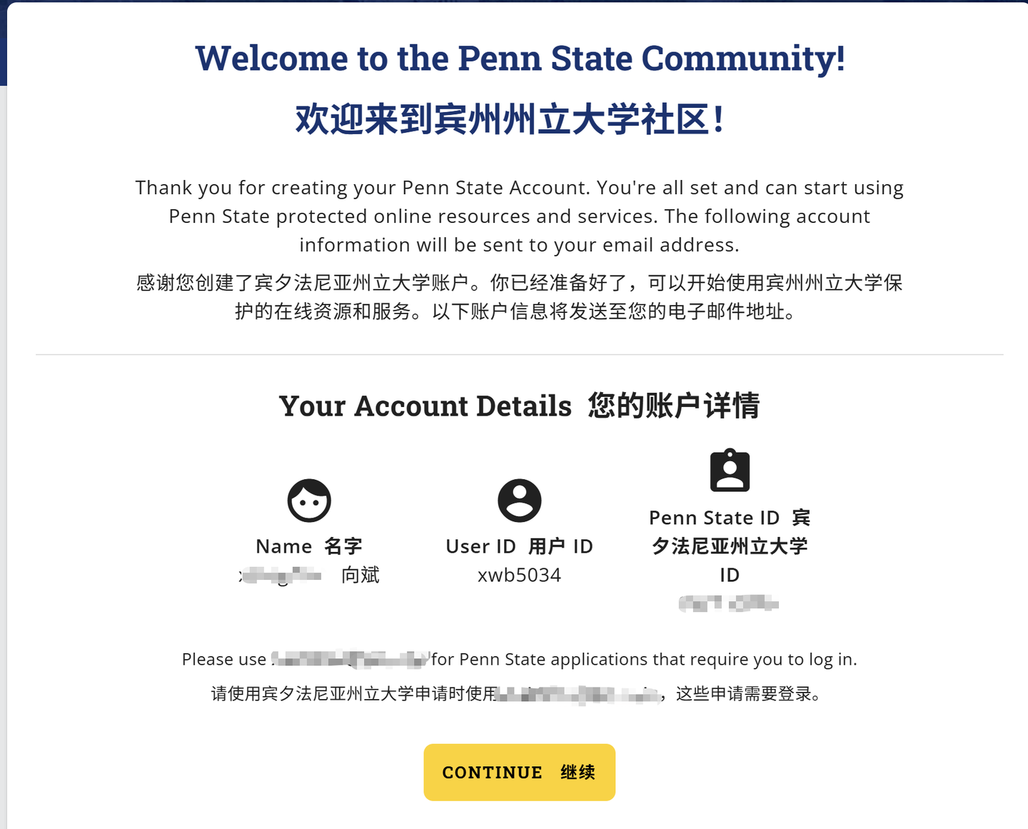 注册好之后会给你一个专属邮箱保存备用,从此你就是尊贵的宾州州立大学的学生了.