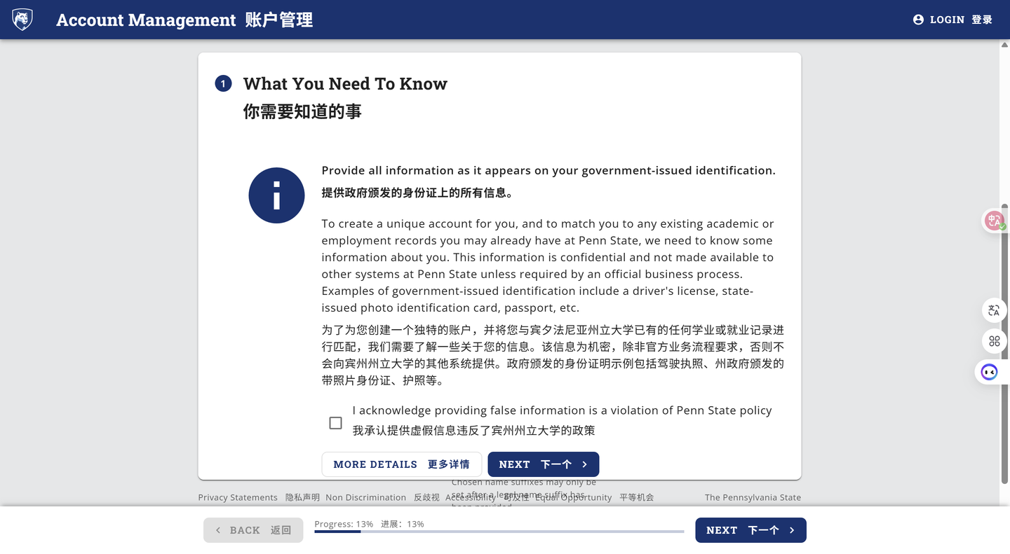 接着,接下来需要登陆学术机构验证学生身份,学校选择Pennsylvania State ,其他的随便填,填好之后需要进入学校官网界面进行验证这里先跳过