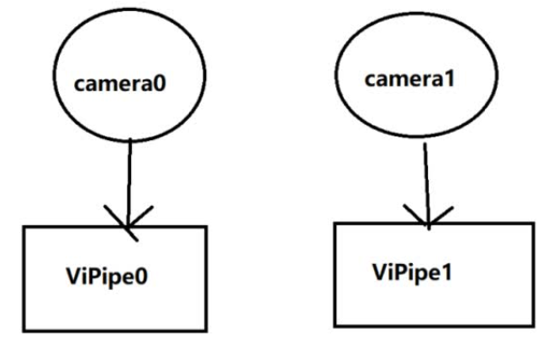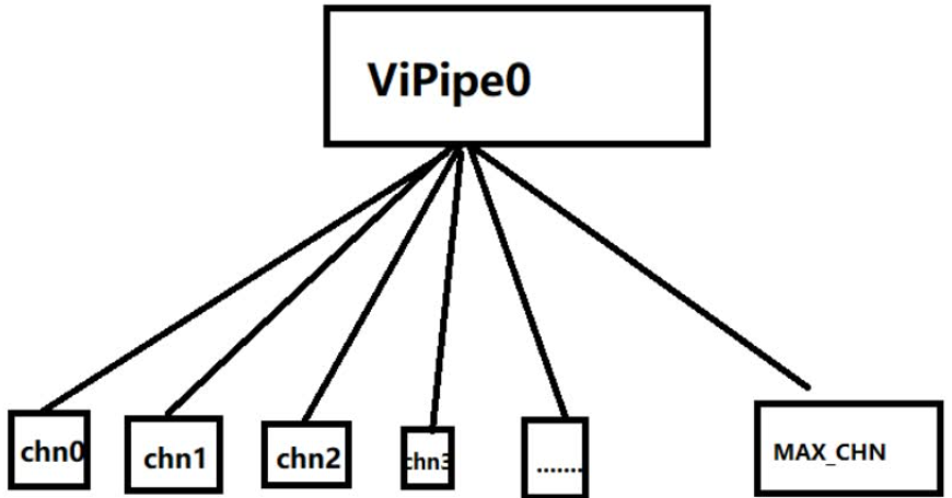 ViChn:**Vi通道号,指的是一个Vi管道里面,有多少个通道能用(但前提是ViChn没有被占用,若被占用则此通道无法被使用)。通常来说Vi通道号和管道号的数值是相同的。在RV1126中管道号和通道号共同决定某个摄像头的某个摄像头数据,下图是ViPipe和ViChn的关系: