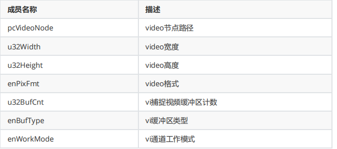 上面已经把VI模块的参数详细介绍了一遍,下面我们重点讲解VI模块的初始化和使能API。
