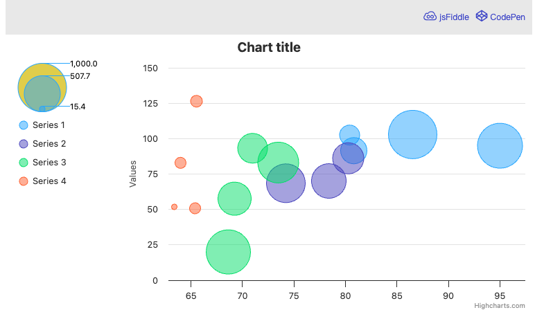 你可以利用Highcharts轻松创建和定制各种样式的气泡图。气泡图例允许以简单透明的方式展示气泡系列的比例尺。