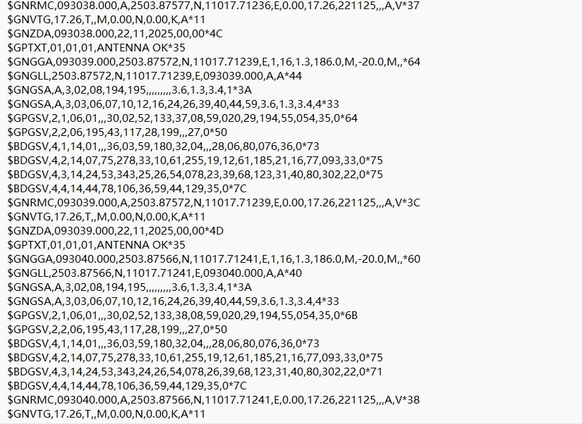 //$GNRMC,093040.000,A,2503.87566,N,11017.71241,E,0.00,17.26,221125,,,A,V*38