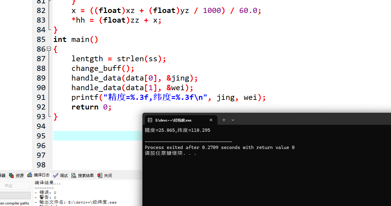 printf("精度=%.3f,纬度=%.3f\n", jing, wei);