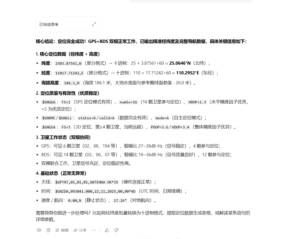 char ss[100] = "$GNRMC,093040.000,A,2503.87566,N,11017.71241,E,0.00,17.26,221125,,,A,V*38";