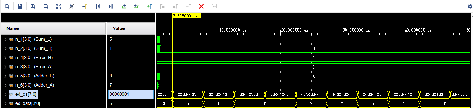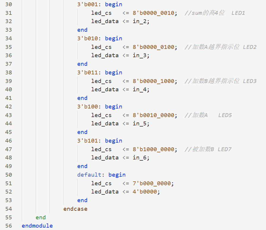 led_cs控制数据在哪个数码管上显示,led_data控制显示数据的值: