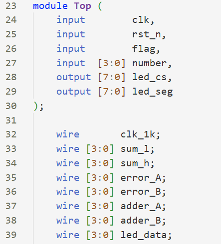 - 使用Verilog语言设计4位二进制输入的BCD码加法器(输入数值范围0~9),能够自动识别输入合规性,输入值>9,输出一个E字符;