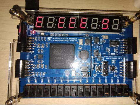 使用1KHz时钟信号驱动数码管,快速切换8个数码管的显示内容,利用视觉暂留效应,使其看起来同时点亮: