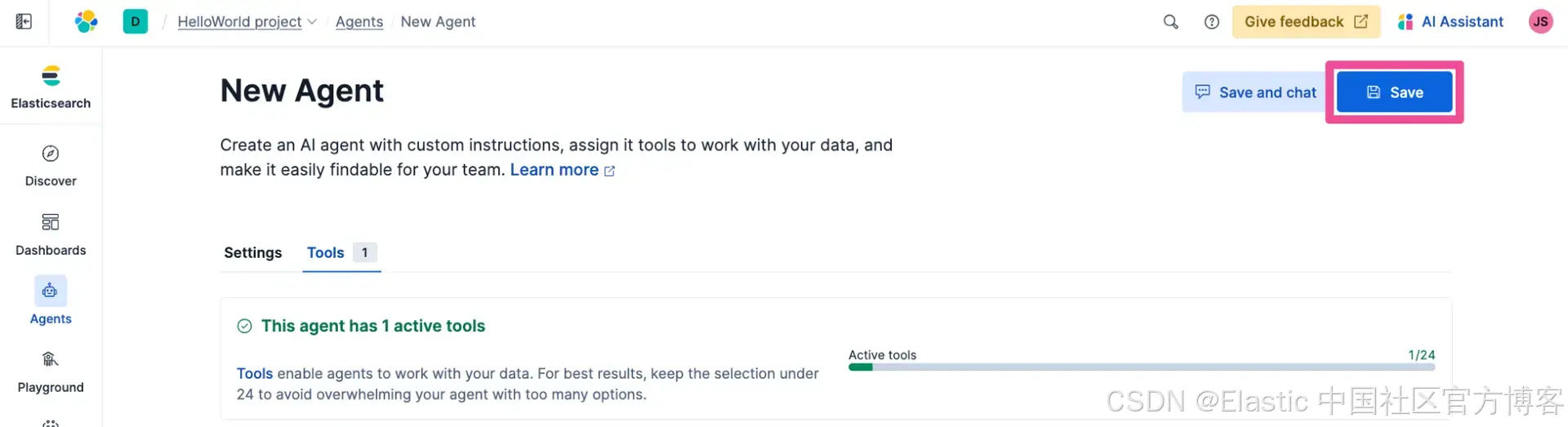 点击 Save 创建该 agent。