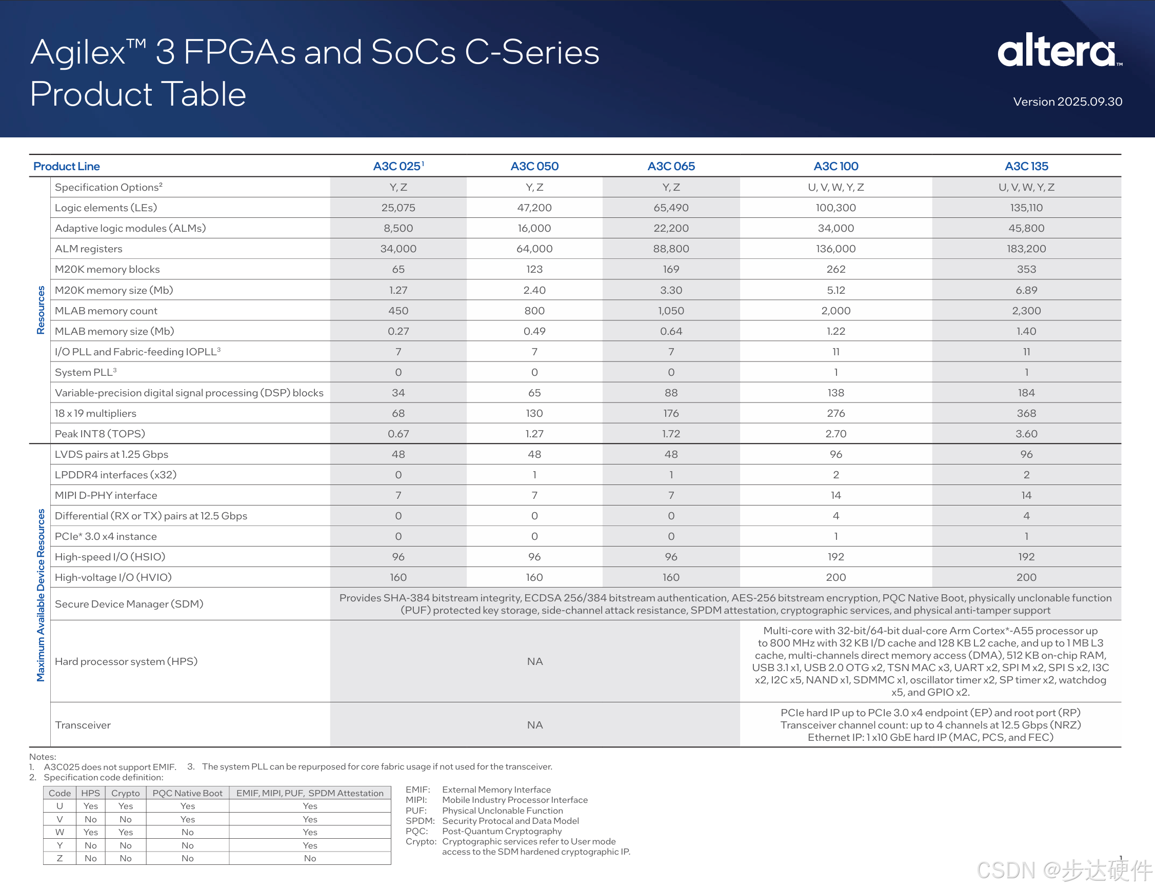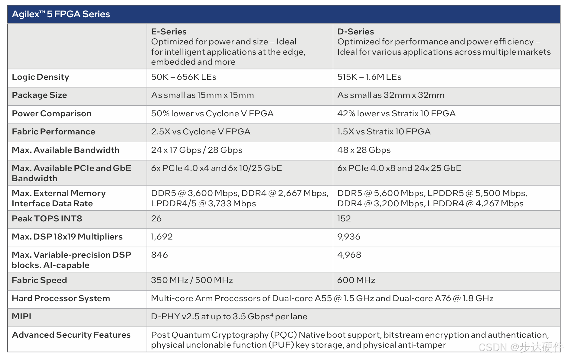 中端系列:Agilex 5、Arria 10、Arria Ⅴ ;