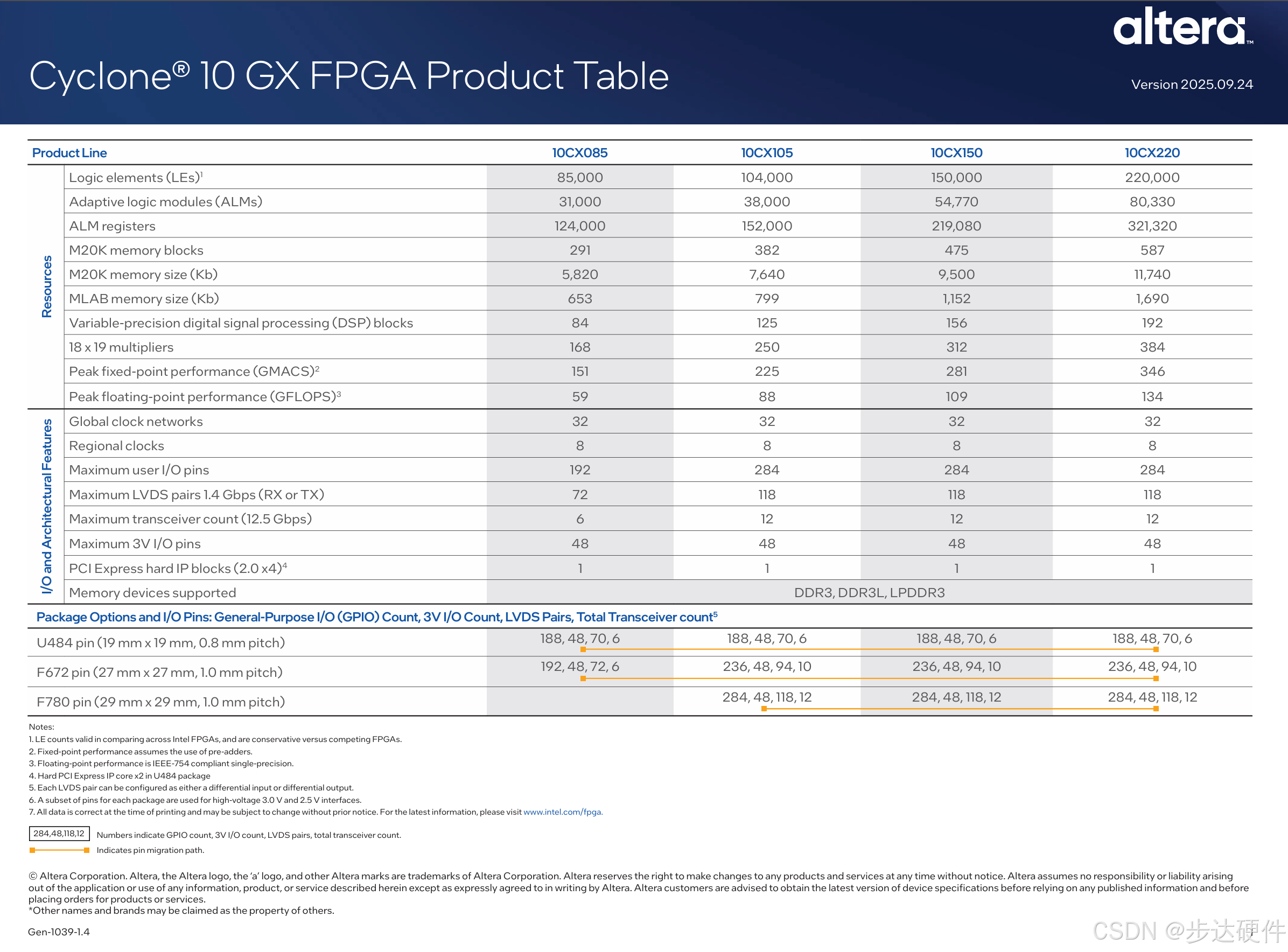 - [1.5.1.1 Cyclone 10 LP系列](#1.5.1.1 Cyclone 10 LP系列)