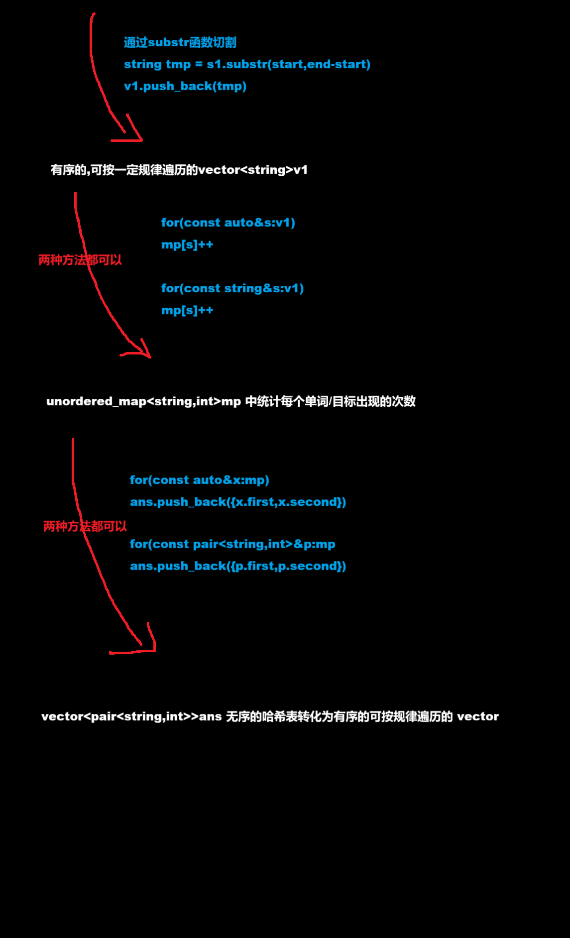 本章讲解三个小题,重点在于 unordered_map的使用,其涉及到底层适配器的混合使用,通过练习这三道题对于vecotr、string、hash、适配器是一个非常不错的锻炼方式。