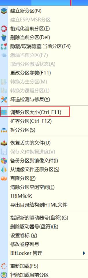 因此使用DiskGenius的"调整分区大小功能,在DiskGenius中右键D盘,选择: