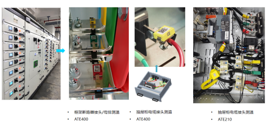 | 无线测温系统 | ATE400(传感器)+ ATC600(接收器) | 多只+多台 | 高低压柜触头、电缆接头温度监测 |
