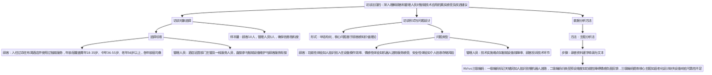 本文采用混合研究方法收集数据,这样可以让信息更全面、结果更可信。具体用了四种方法:一是文献分析法,主要用来整理之前学者们关于智能技术和酒店顾客体验的理论,通过看期刊论文和学位论文,整理出智能技术应用的类型和顾客体验质量的功能性、情感性、舒适性、安全性这四个主要维度,为后边的问卷和访谈打好基础。二是问卷调查法,这个方法直接面向住过菲住布渴酒店的顾客,设计一份结构化的问卷,里面会问他们使用酒店各种智能设备,比如自助入住机、客房智能系统、服务机器人或者AI客服的感受,特别针对那四个体验维度打分,通过大量问卷收集普通顾客的真实想法。三是访谈法,光靠问卷可能不够深入,所以本文还会找一小部分顾客和酒店的管理人员,和他们面对面或者线上聊一聊,重点挖掘他们在使用智能技术时遇到的麻烦、不满意的具体地方或者觉得好的方面,问卷里可能没问到的细节,这样能更清楚地知道问题在哪。四是统计分析法,等问卷收回来之后,会用SPSS软件来算,比如看看问卷里的问题是不是可靠(信度分析),智能技术的应用和顾客体验各个维度的分数有没有关系(相关性分析),或者某个技术对体验的影响有多大(回归分析),用数字说话,找出问题具体出在哪个环节。