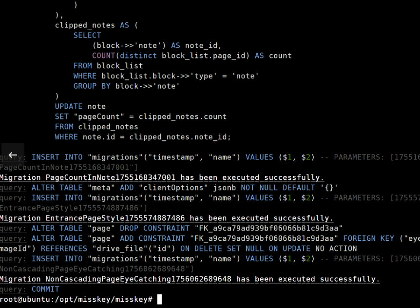 **特别提醒:**数据库初始化指令只能执行一次,如果你在使用了一段时间Misskey项目之后,重新执行了这条指令,可能有数据库重置的风险!