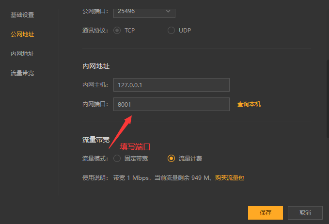 4,在内网端口里填写端口 8001 后点击【创建】按钮,如下图。