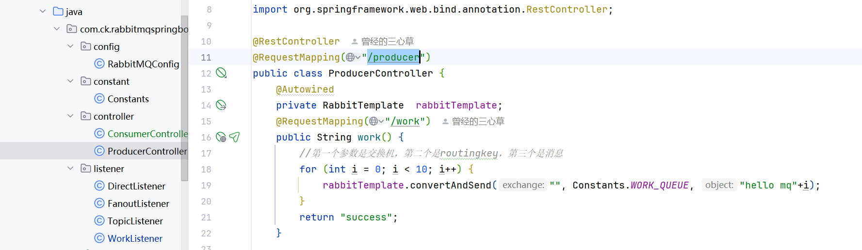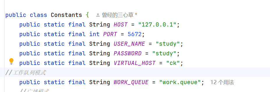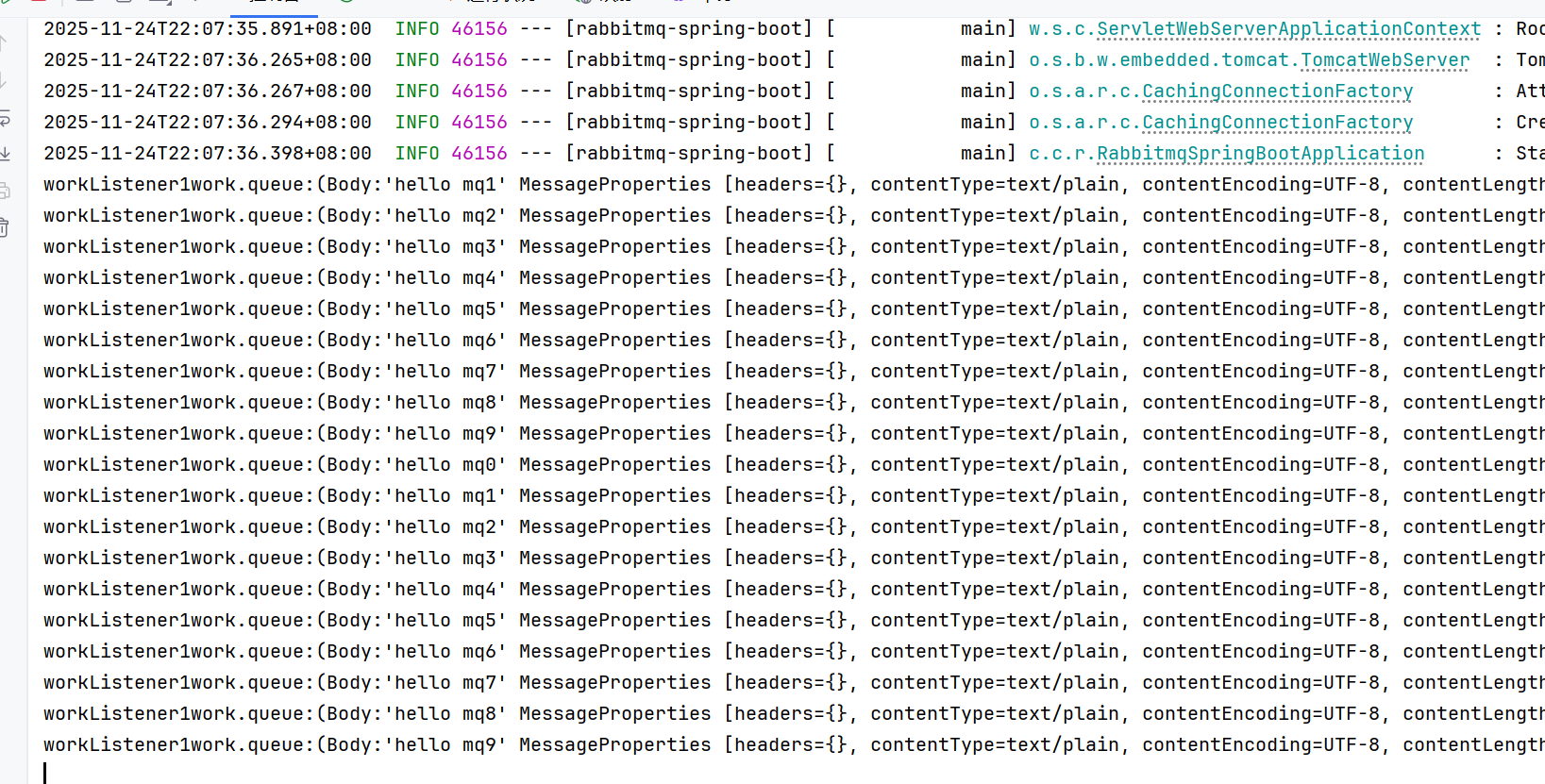 @RabbitListener(queues = Constants.WORK_QUEUE)//监听work.queue队列