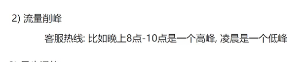 • 延迟通知: 在需要在特定时间后发送通知的场景中, 可以使⽤MQ的延迟消息功能, ⽐如在电⼦商务平台中,如果⽤⼾下单后⼀定时间内未⽀付,可以使⽤延迟队列在超时后⾃动取消订单