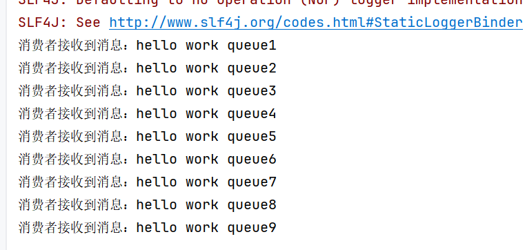 channel.basicPublish("",Constants.WORK_QUEUE,null,("hello work queue"+i).getBytes());