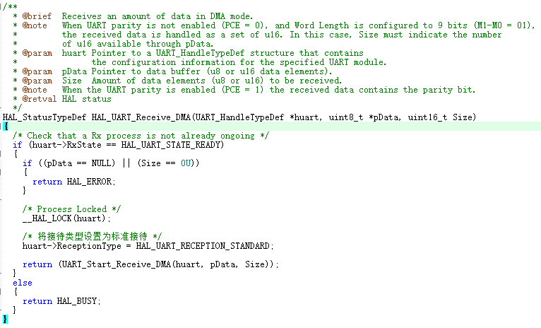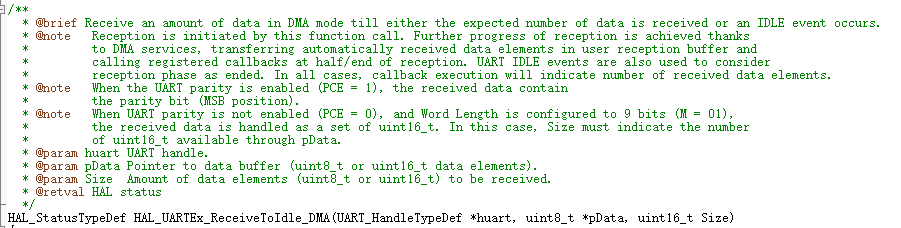 HAL_StatusTypeDef HAL_UARTEx_ReceiveToIdle_DMA(UART_HandleTypeDef *huart, uint8_t *pData, uint16_t Size)
