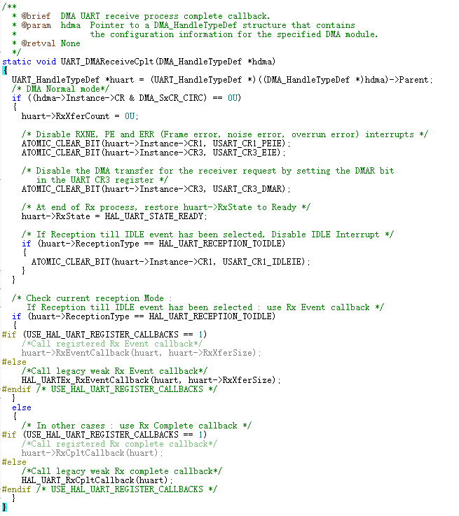 void HAL_UART_RxCpltCallback(UART_HandleTypeDef *huart)// 仅处理 UART 的 DMA 传输完成中断(Transfer Complete,即全满)